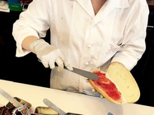 コンセプトに掲げるのは、焼きたて・揚げたて・作りたての3つ。パンは作り置きせず、こまめに焼き上げているため、いつでもフワフワだ。パンの具材は全て自家製で、1つ1つ手で包んで揚げている。また、最もおいしい状態で提供するため、注文を受けてからつくる。甘いコッペパンは、目の前でジャムやクリームを塗り、でき立てを味わえる。惣菜コッペパンは、可能な限り揚げたてを届けられるように、こまめに揚げて温かさを維持している。