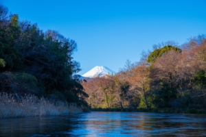清水町内を流れる柿田川と富士山(清水町HPより)