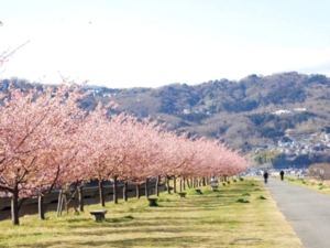 早咲きの河津桜が約400メートル並ぶ「城山さくら」